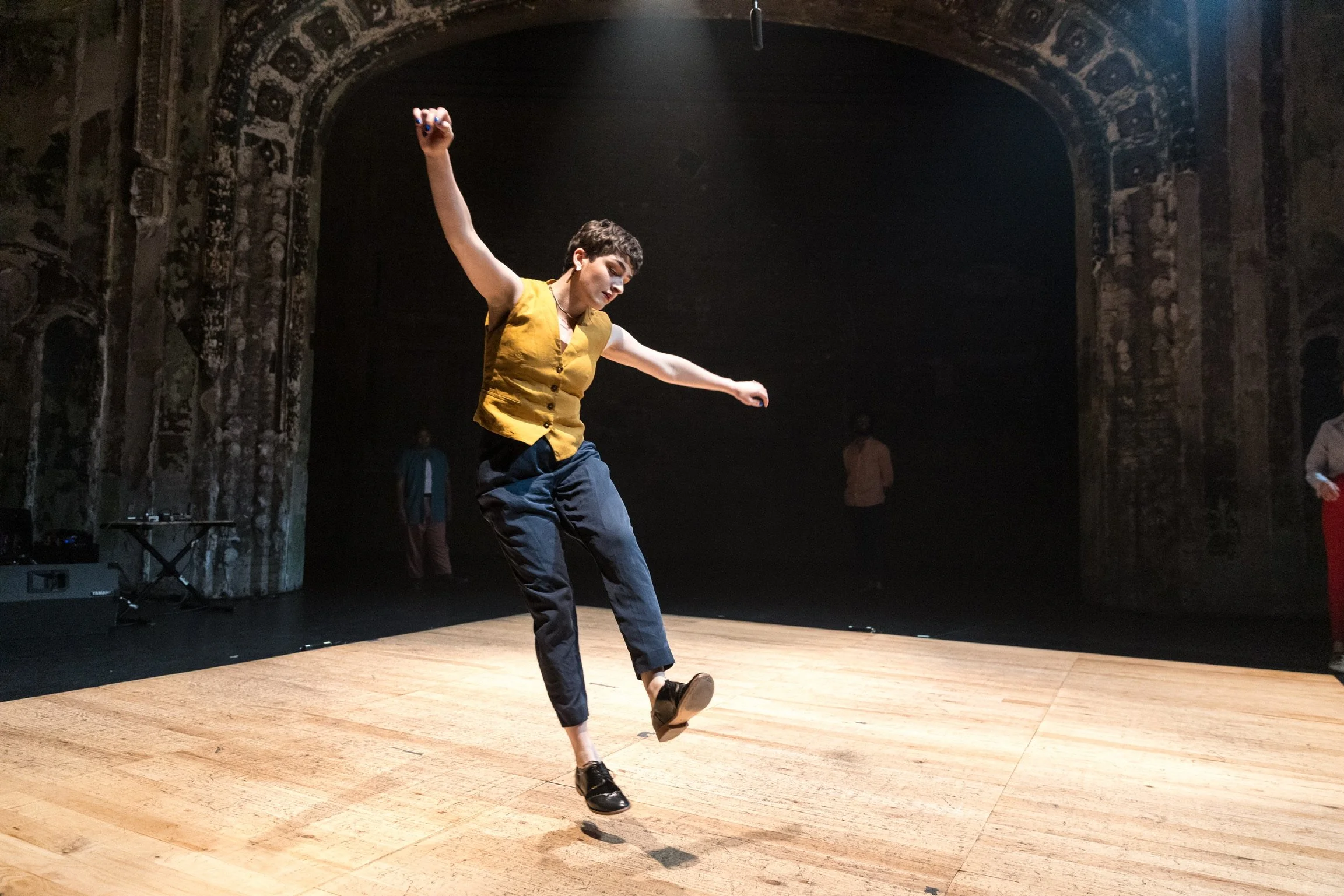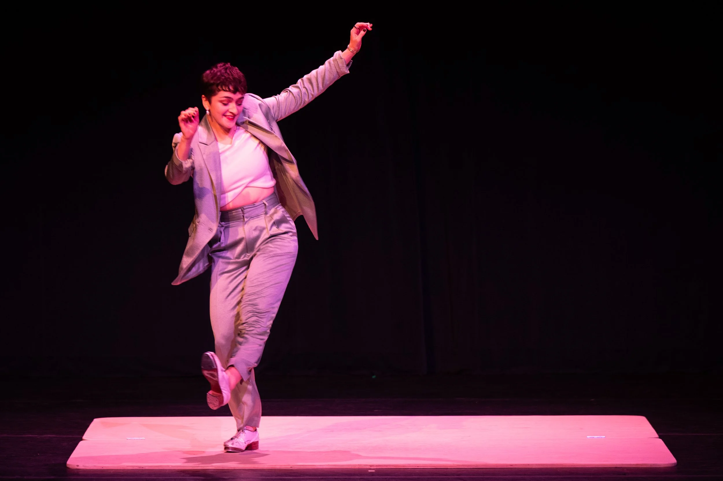 As a performer, I seek to inhabit and create work where my and others’ individuality, queerness, creativity, and complexity are not only welcomed but celebrated. I’m drawn to collaborations that challenge conventions and expand how we perceive body, and identity—particularly through lenses of queerness, disability, and gender. I’m inspired by artists who build new music, dance, and theatre work from underrepresented or misunderstood histories (particularly the Black American Jazz Dance and Jazz Music Tradition), and by performance practices that serve as a form of community care—offering healing, joy, and release for both the artist and the audience. My goal as a performer is to bring curiosity, integrity, and authenticity into every story I help tell.